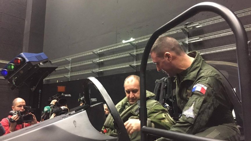 В последния ден от визитата си във Франция президентът Румен Радев се качи на тренажор за полет с изтребителя "Рафал".