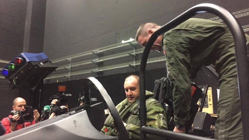В последния ден от визитата си във Франция президентът Румен Радев се качи на тренажор за полет с изтребителя "Рафал".