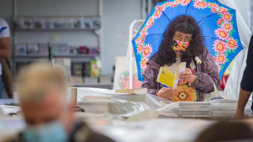Между капки дъжд и дезинфектант, скрити между плътни страници се крият множество истории, които пролетният панаир на книгата в София предлага на читателите. Сред тях са Деница и Кристиян, които ни разказват, че за всяко настроение си има книга.
