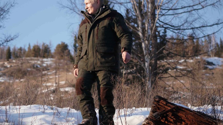 На предоставените от Кремъл кадри и и излъчени по телевизиите, се вижда как той кара високопроходим автомобил и се разхожда из снежната планина в компанията на военния министър Сергей Шойгу.