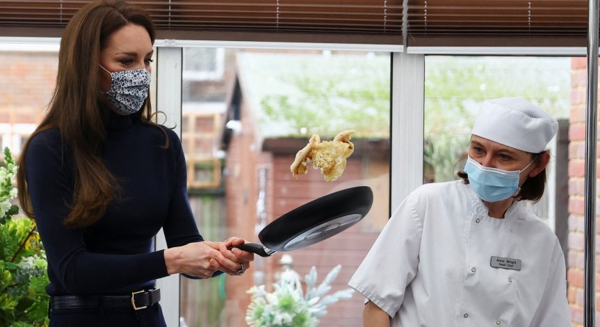 "Честит ден на палачинката!". Това написаха на официалната страница на кралското семейство и споделиха снимки от визитата на съпругата на принц Уилям. На кадрите се вижда как Кейт държи тиган в ръка, а над него – във въздуха, се върти палачинка. Ала сякаш тя не е в перфектната кръгла форма.