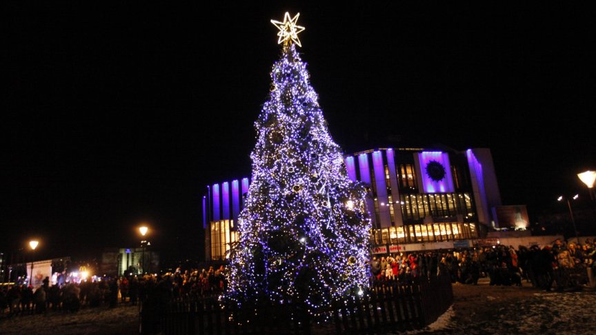 Точно в 19.00 часа тази вечер в София ще грейне коледната елха. Тя е разположена пред Националния дворец на културата.