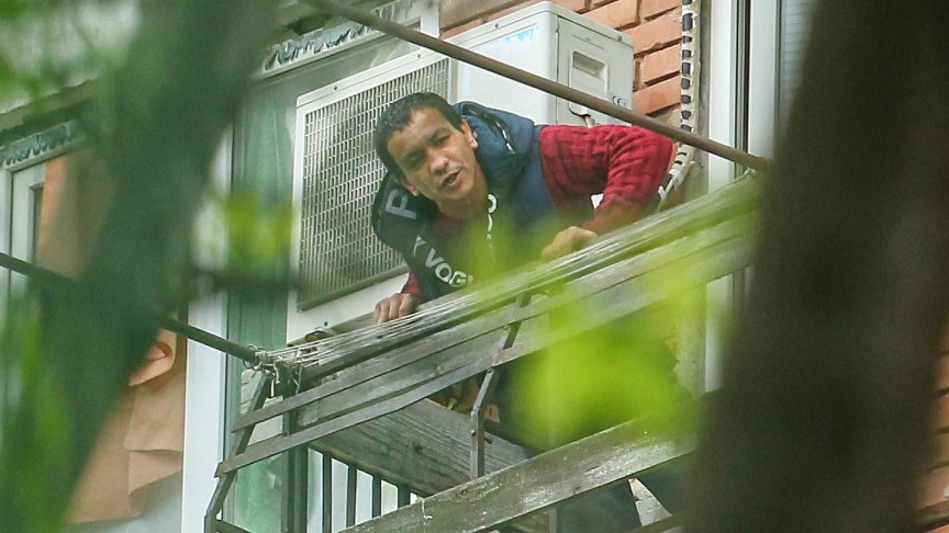 Малко по-рано през деня той се показа от прозореца си, крещейки, че отново ще започне да хвърля предмети.