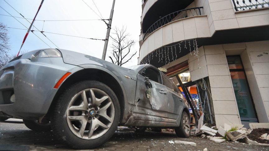 Среднощен екшън - водач на автомобил се вряза в денонощен магазин. Инцидентът е станал снощи на кръстовището на ул. "Дойран" и ул. "Нишава". Шофьорът на джипа разбива витрината на магазина, след като дава рязко назад. Пострадали са трима души.