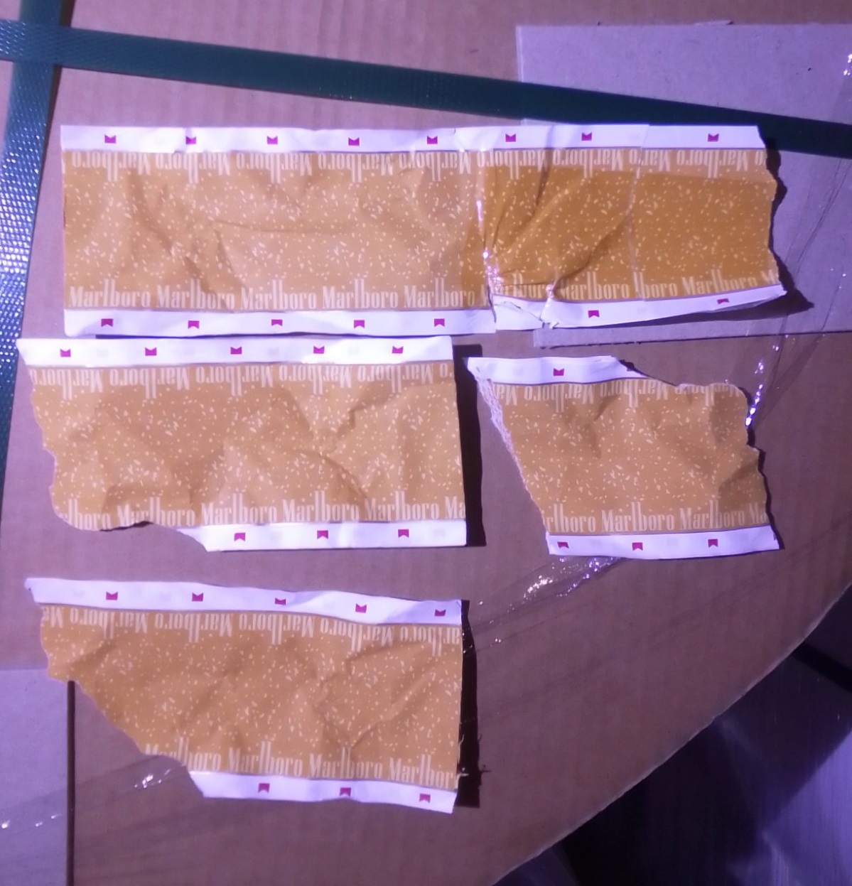 На 21 май спират за проверка товарен автомобил, който по документи е превозвал опаковъчни материали от България за Германия. В хода на проверката откриват два палета със стока, обвита в картон и стреч фолио. След като е премахната външната и част от вътрешната опаковка на стоката, са намерени бобини с лента коркофан с логото на търговската марка "Marlboro".
