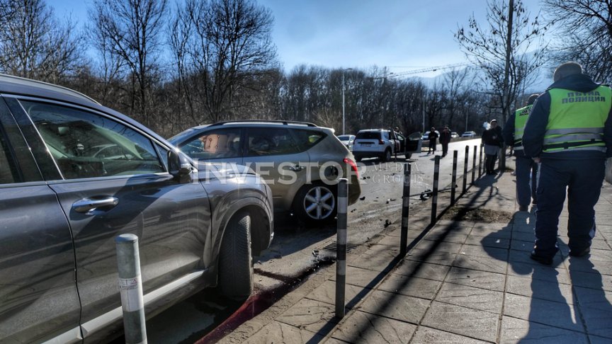 Катастрофата сериозно затрудни трафика в столицата до една от големите болници. Ударените автомобили са изчаквали да влязат на паркинга на болницата. Пострадали са двама души от спрелите автомобили.