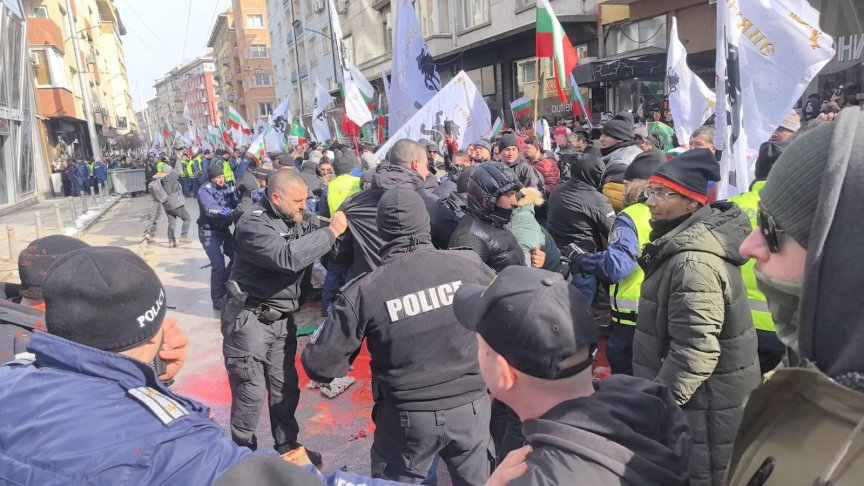 М.П. е обвинен за това, че е блъскал по входната врата на централния вход на административната сградата, раздавал е на неустановени лица яйца, напълнени с червена боя и ги е и хвърлял по фасадата на сградата.