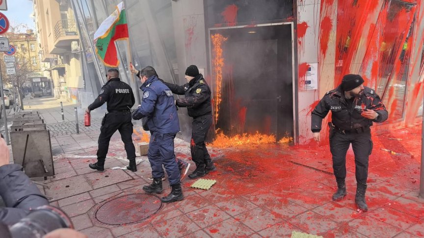 С.К. е привлечен към наказателна отговорност за това, че е раздавал на неустановени лица и хвърлял по фасадата на сградата яйца, напълнени с червена боя, след това запалил факла и я хвърлил, докато гори по фасадата на сградата.