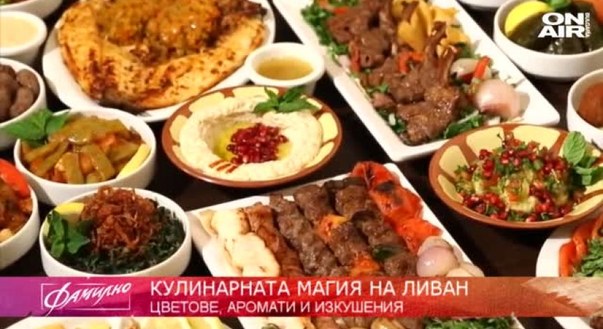 Днес отиваме с Димана Мирчева на обяд в Ливан. Всъщност, кухнята на Ливан и Сирия е напълно идентична - тя е едновременно кухня на слънцето и на сърцето. Кулинарните традиции в страната на кедъра, Ливан, и в родината на първата азбука, Сирия, разбира се, приличат на тези в останалите арабски страни, но като че ли именно благодарение на Ливан и на Сирия характерните вкусове от региона са станали популярни в цял свят. Жителите на двете страни от Близкия изток се вписват в традицията на Средиземноморието и успяват да извлекат възможно най-голяма наслада от храненето.
