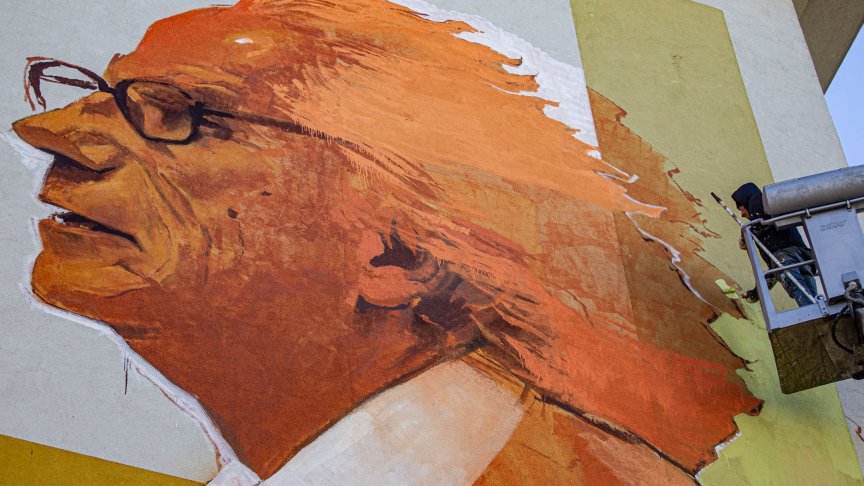 Жест към Кристо: Образът му краси фасадата на Софийската математическа гимназия