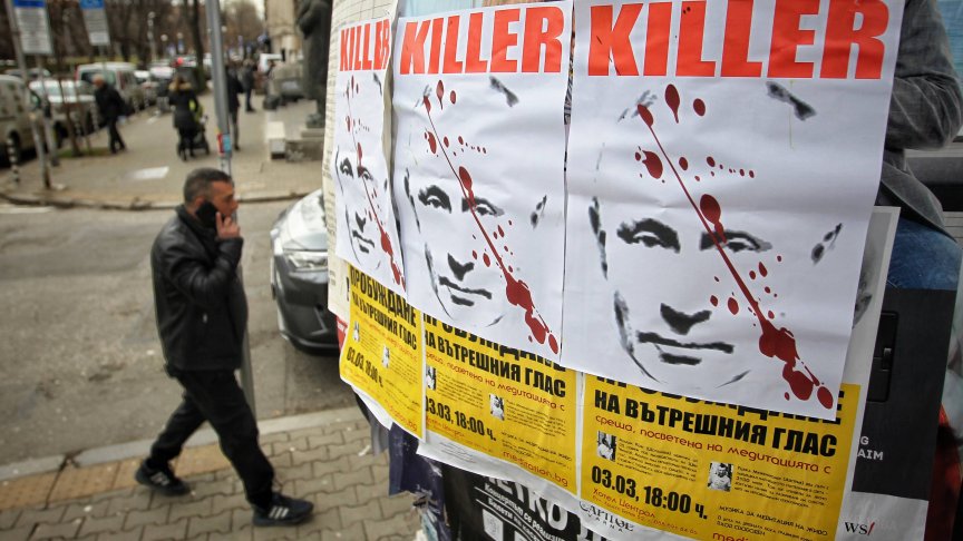 В София разлепиха множество плакати с надпис "Путин е убиец"