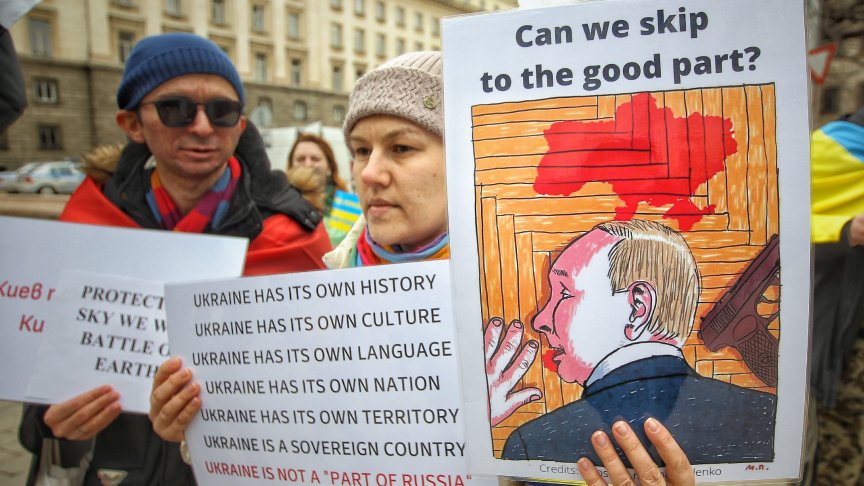 Протест пред президентството срещу войната и в подкрепа на Украйна