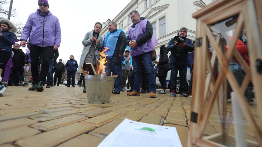 КНСБ и служители на ТЕЦ "Марица - Изток" излязоха на протест пред НС