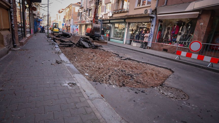 Затвориха столична улица - къртят нов асфалт, за да сложат павета