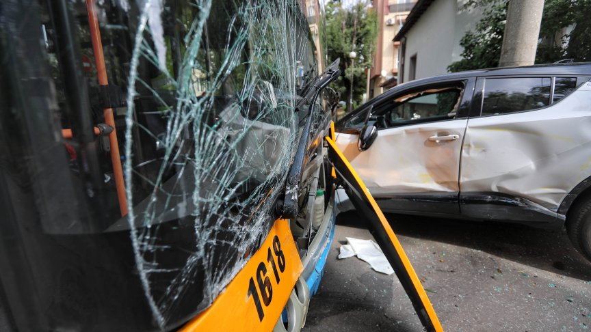 Тежък удар между тролейбус и автомобил в София