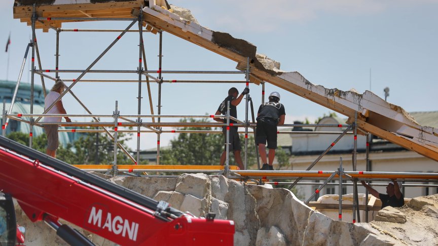 Монтират сцената за представлението "Рилският пустинник" пред храм "Ал. Невски"
