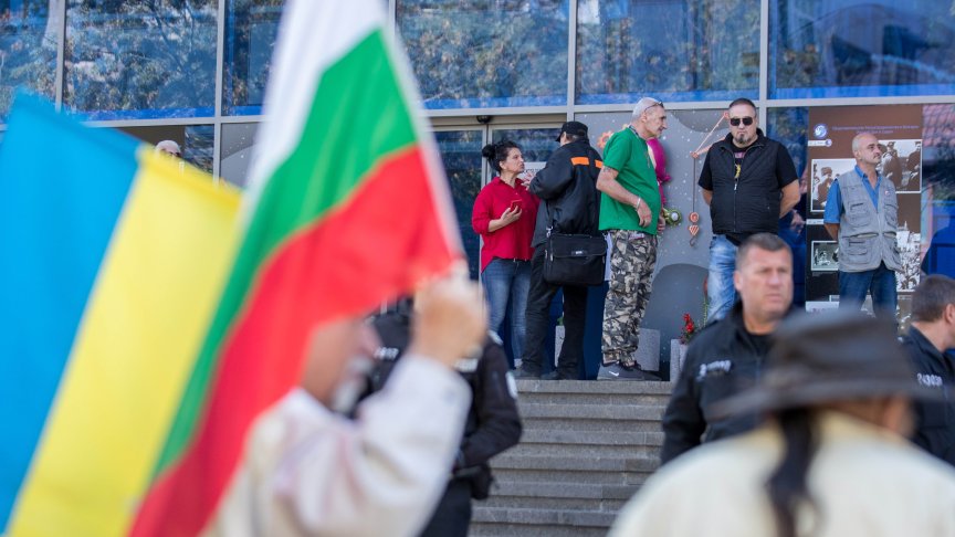 Защитници на Украйна се събраха пред Руския културно-информационен център (СНИМКИ)