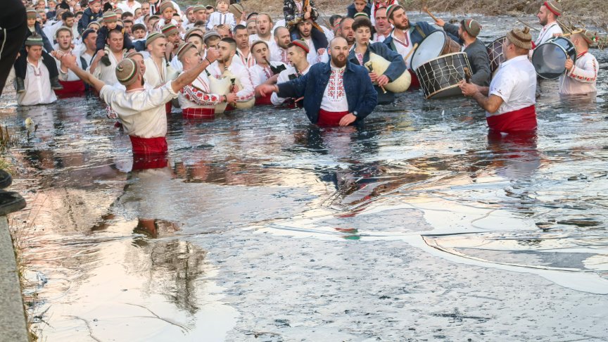 Мъжкото хоро се изви в ледените води на Тунджа в Калофер (СНИМКИ)