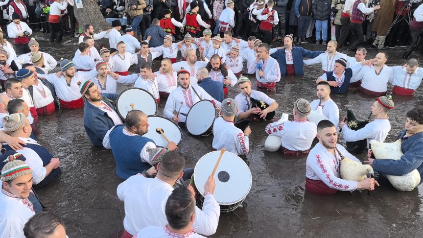 Мъжкото хоро се изви в ледените води на Тунджа в Калофер (СНИМКИ)
