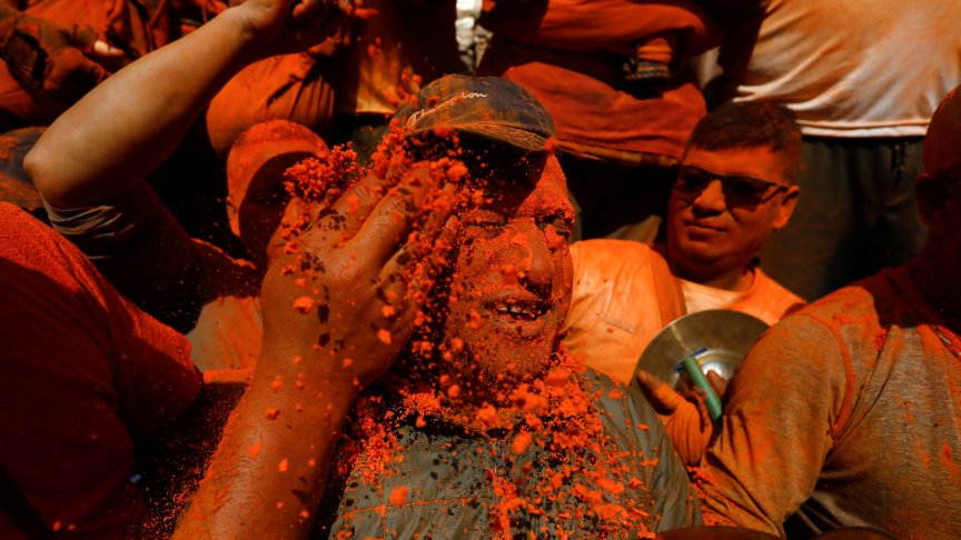 Синдур Джатра: Цветният фестивал на пролетта в Непал (СНИМКИ)