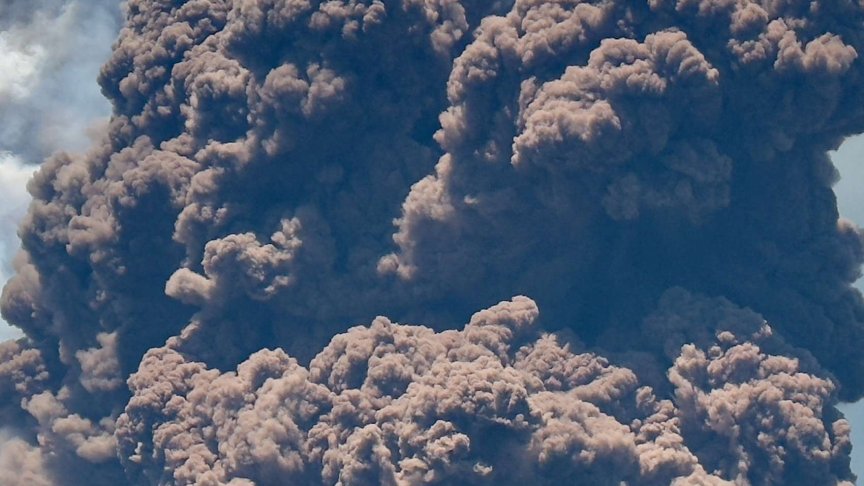 Вулканът изхвърли огромен стълб дим и пепел