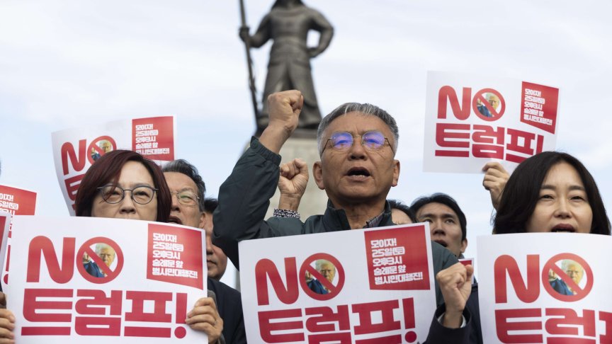 "Не на Тръмп" - протест срещу американския президент в Южна Корея (СНИМКИ)