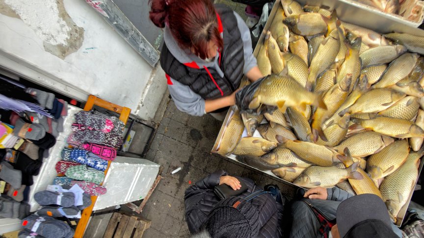 Опашки за риба на Женския пазар в София преди Никулден (СНИМКИ)