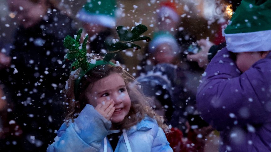 Снимка, Ирландия: Reuters - изкуствен сняг за надбягване на Дядо Коледа и елфи