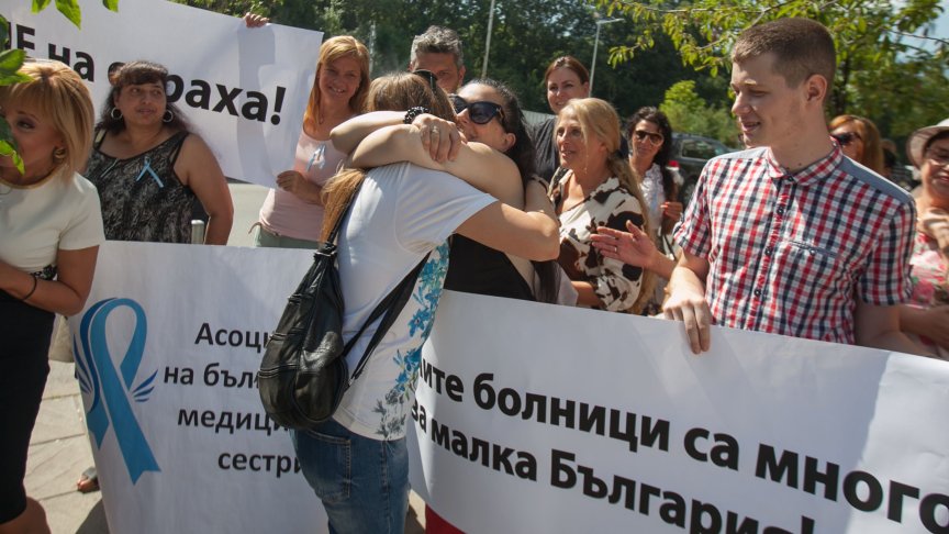 Протест в подкрепа на медицинската сестра Мая Илиева се проведе днес пред столичната болница "Токуда". Протестиращите се обявиха и срещу синдикатите.