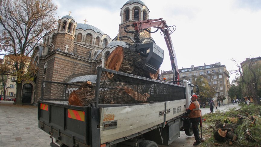 Служители на Столичната община нарязаха и разчистиха падналия ствол на дървото.