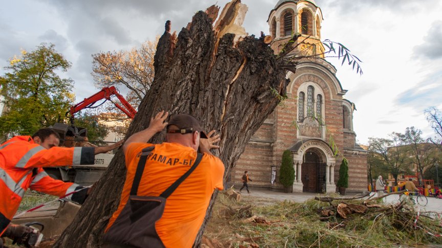Едно от емблематичните дървета в столицата се счупи. Падна върбата пред църквата "Св. Седмочисленици" в София.
