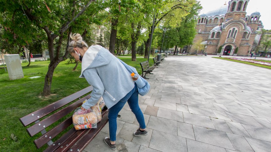 В съботния ден бяха оставени пакети храна за хора в нужда по пейките в градинката до "Свети Седмочисленици“ в София.