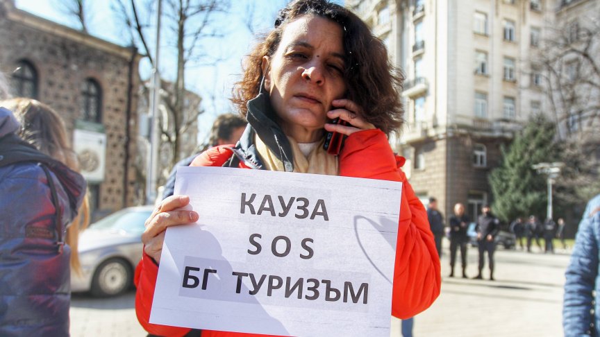 Туроператори протестираха с искане за държавна подкрепа за туристическия бранш. От 13 март те трябва да започнат да връщат парите на своите клиенти за провалените екскурзии заради ковид ограниченията.