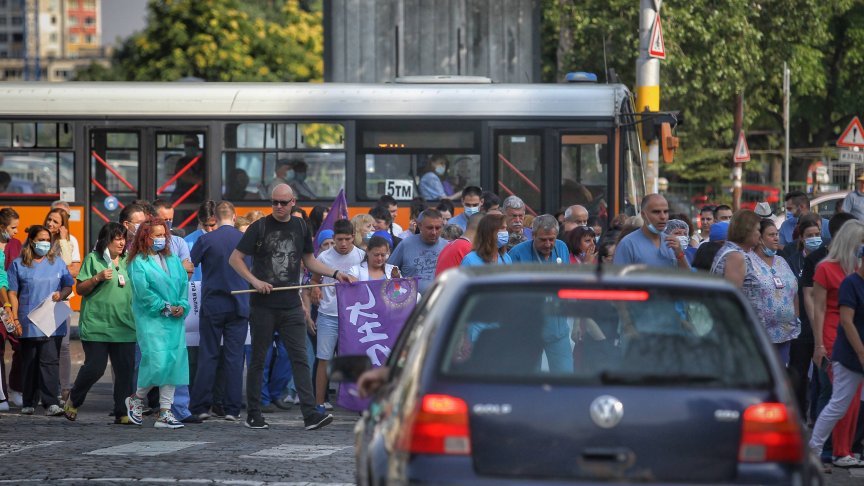 Санитари, медицински сестри и лекари отново за кратко блокираха кръстовището пред болница Пирогов.