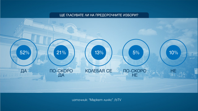 На въпрос дали ще гласуват на предсрочните избори 54% от анкетираните отговарят положително.