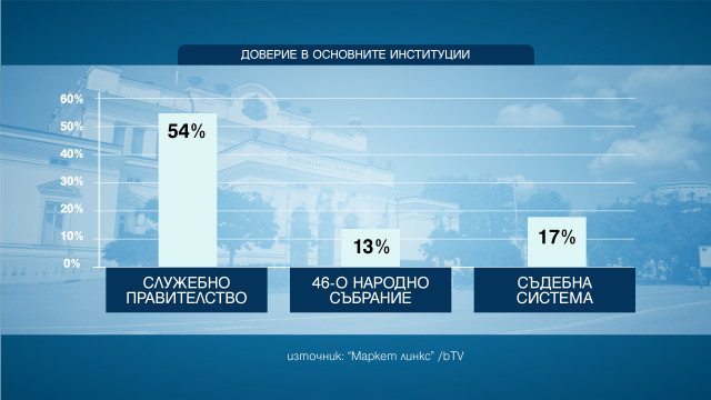 Народното събрание отново е с най-ниско ниво на публично доверие от българските институции. За месец спадът в симпатиите към него е с около 10%. Обратна е тенденцията при служебното правителство.