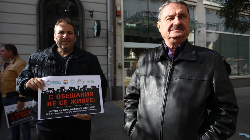 Протест пред Министерство на туризма. Недоволни от бранша поискаха разпределение на 70 млн. лв., които вече са гласувани от Народното събрание, но 40 милиона от тях се бавят.