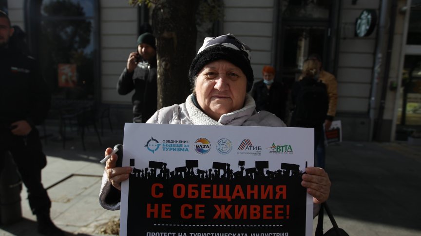 Протест пред Министерство на туризма. Недоволни от бранша поискаха разпределение на 70 млн. лв., които вече са гласувани от Народното събрание, но 40 милиона от тях се бавят.