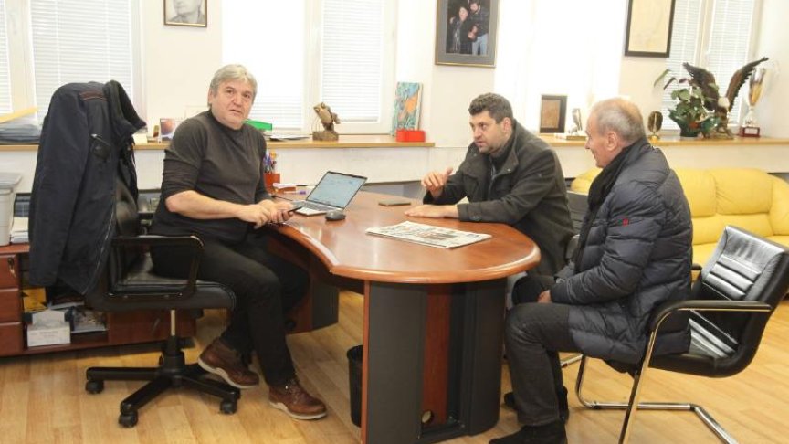 "В момента някакви хора тук са дошли, не ги познавам, и нещо искат, сега ще разберем", каза сутринта собственикът и главен редактор на "Труд" - Петьо Блъсков.