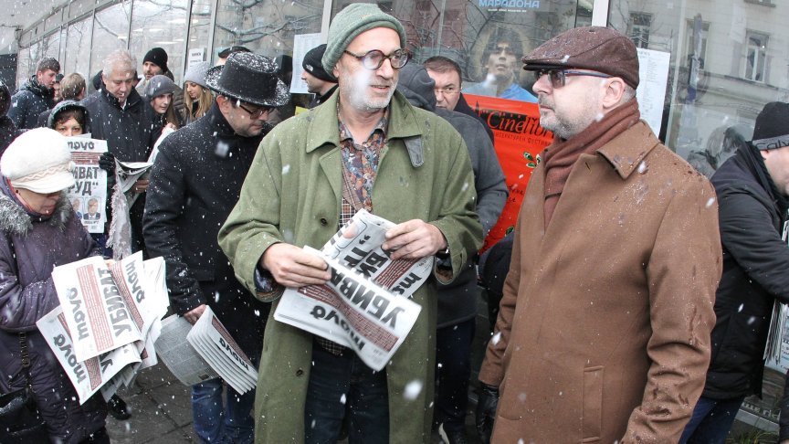 "Ако не се реагира, независимо какво отношение има към вестника, обричаме собствената си крехка свобода, която и без това виси на косъм. Това е солидарност с медиите в България", каза депутатът от ГЕРБ - Любен Дилов, който беше на импровизирания флашмоб пред Министерството на културата.
