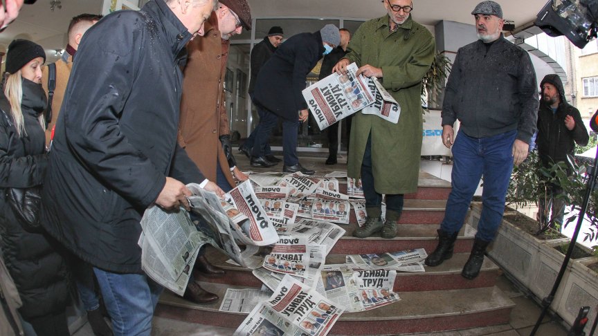 От партията разпръснаха днешния брой на вестника пред Министерството на културата - символично погазване на свободата на словото.