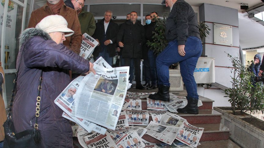 От партията разпръснаха днешния брой на вестника пред Министерството на културата - символично погазване на свободата на словото.