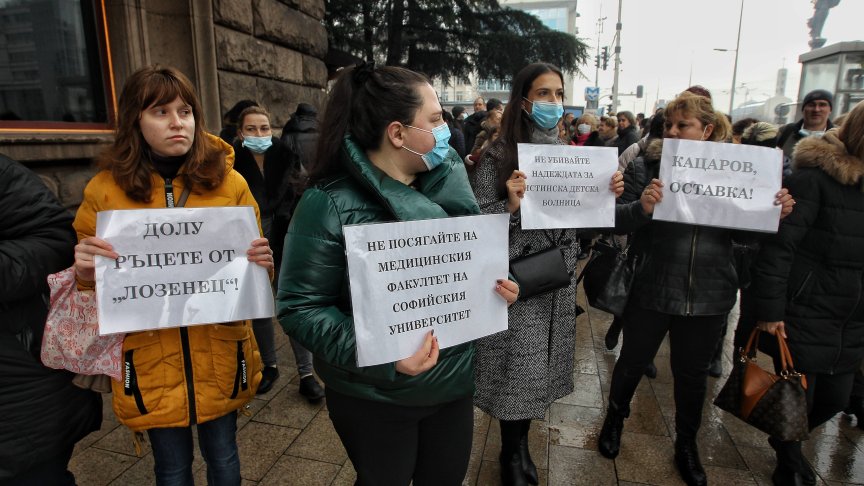 Лекари от болница "Лозенец" блокираха бул. "Дондуков" 1 при Министерския съвет. Протестът им продължи пред Министерството на здравеопазването, където те поискаха оставката на здравния министър Стойчо Кацаров.