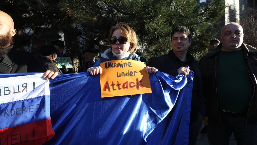 Пред руското посолство в София се събраха хора, които се обявяват срещу военните намеси в Украйна. Те не желаят нарушаването на териториалната цялост на една суверенна държава.