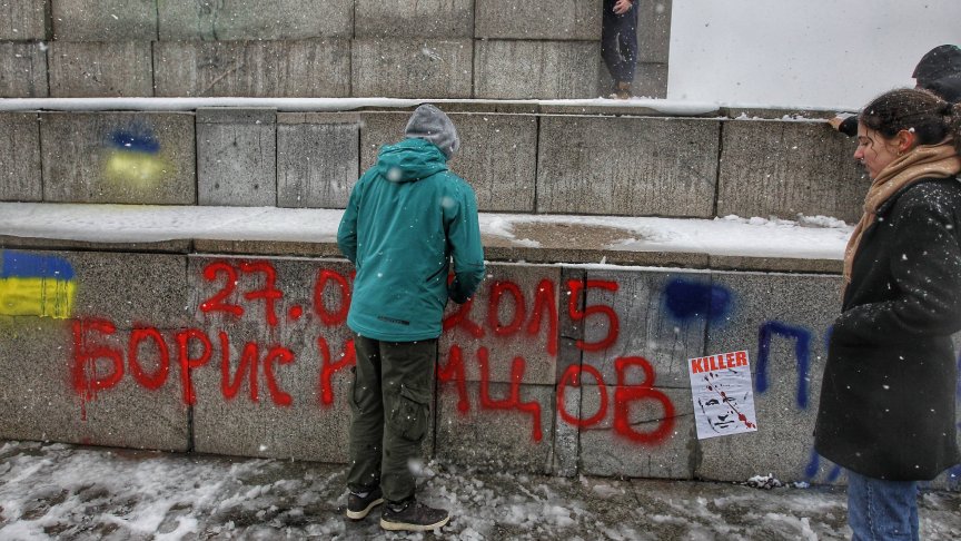 Недоволните залепиха плакати с лика на руския президент Владимир Путин на монумента. Полицията не се намеси.