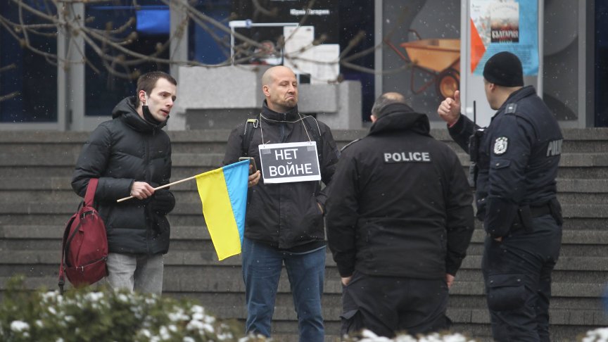 Няколко десетки руснаци, живеещи в България, решиха да изразят своето несъгласие с войната на Путин срещу Украйна. Повечето от тях носеха саморъчно изготвени плакати, украсени с цветовете на украинското знаме – синьо и жълто.