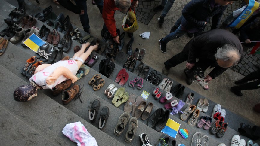 Мариана и Влада са украинки и идват, за да подкрепят родината си, в която в момента живеят техните родители. За мир се моли и Десислава. На шествието води дъщеря си Сара.Пред сградата на Руския културен център демонстрантите оставиха обувки и свещи в памет на жертвите на войната в Украйна.