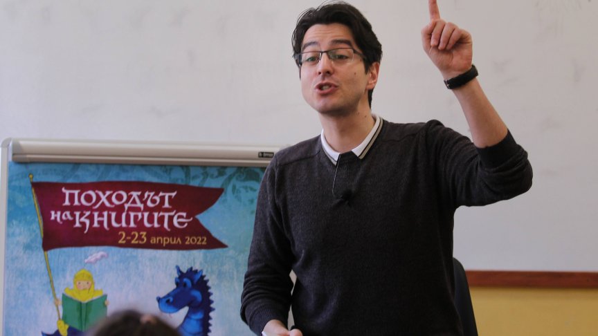 "Важно е, когато четете, къде се намирате, с кого сте, за да запомни човек прочетеното и да развихри въображението си", каза Атанасов на учениците.
