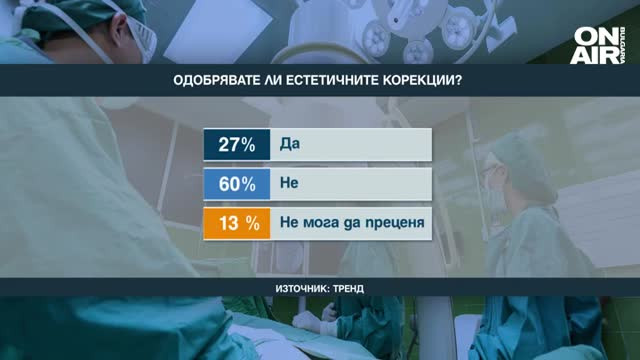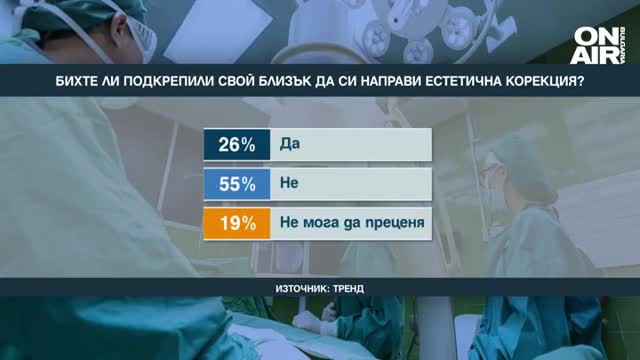 Д-р Йордан Йорданов е пластичен хирург. Той не е съгласен с данните от проучването. Според него хората, които искат да променят външния си вид, се увеличават.