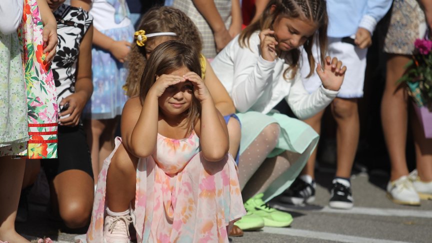 Сред първокласниците е и Еми, която много се вълнува, че ще бъде ученичка.